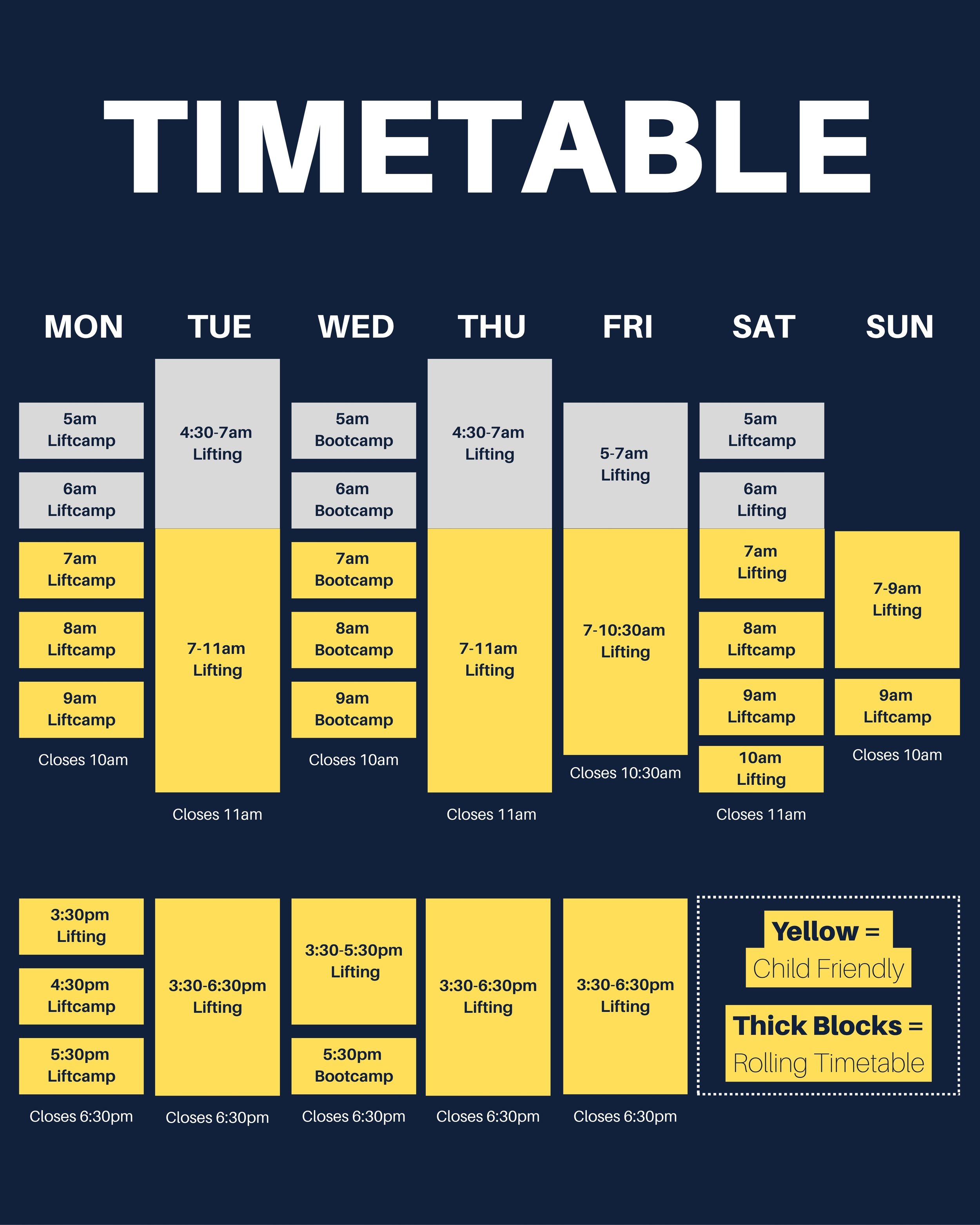 🔎 The timetable is always up to date on the website so head there EVERY TIME!